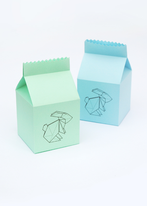 Hello! Last year I made some ‘origami bunny’ chocolate bar wrappers and I thought the bunny would look nice on these treat boxes. The design is really minimal and suitable for kids and grown-ups.